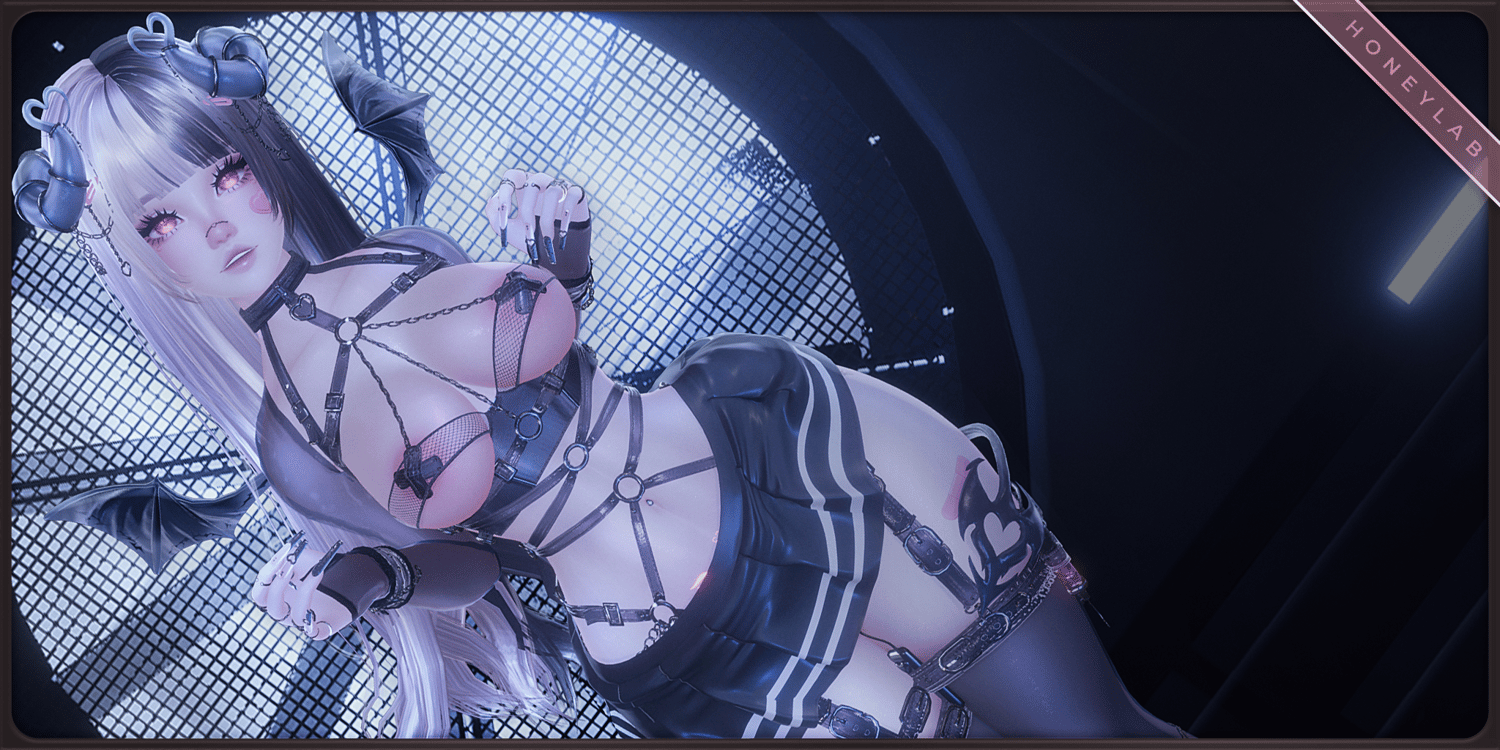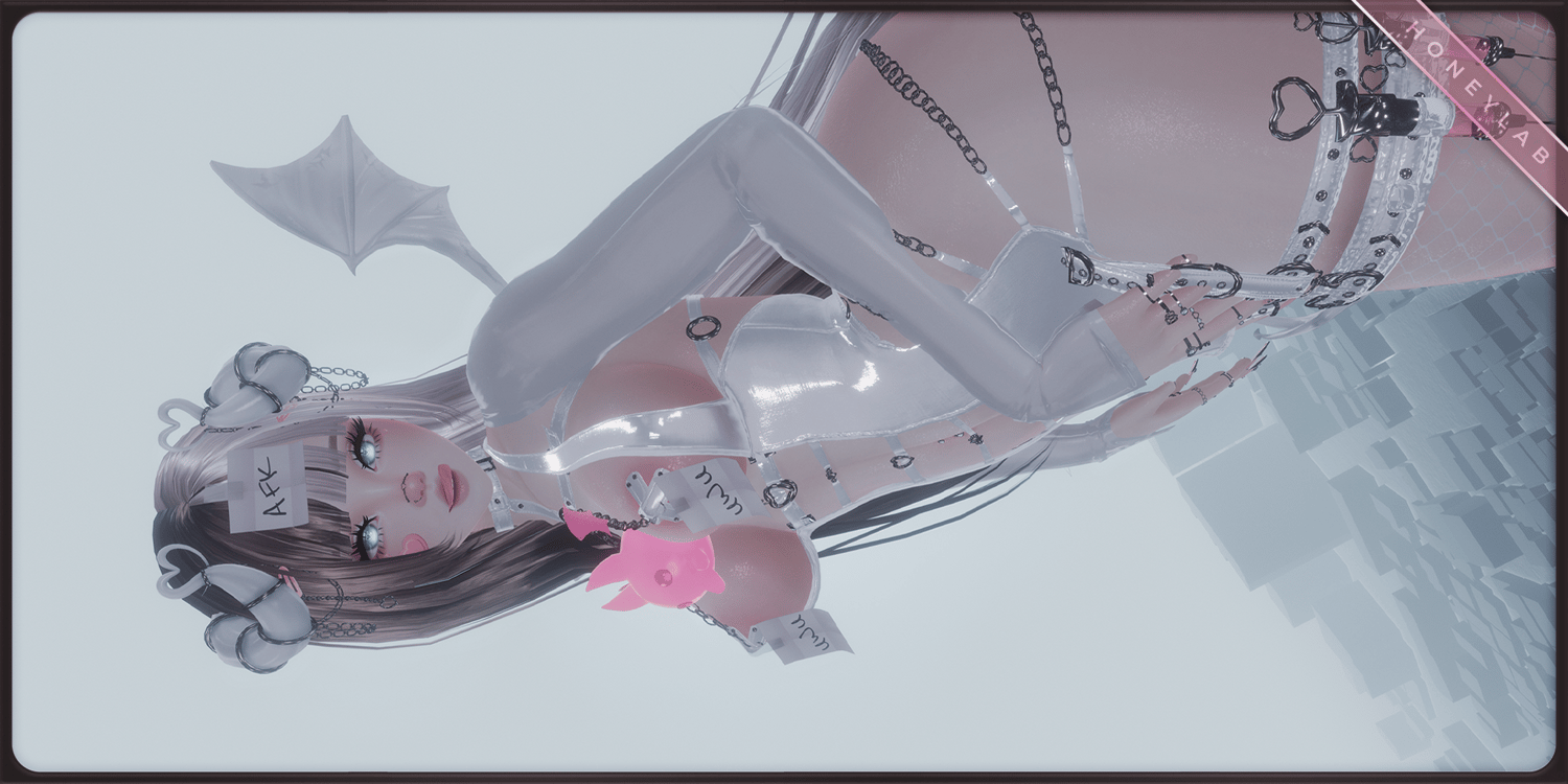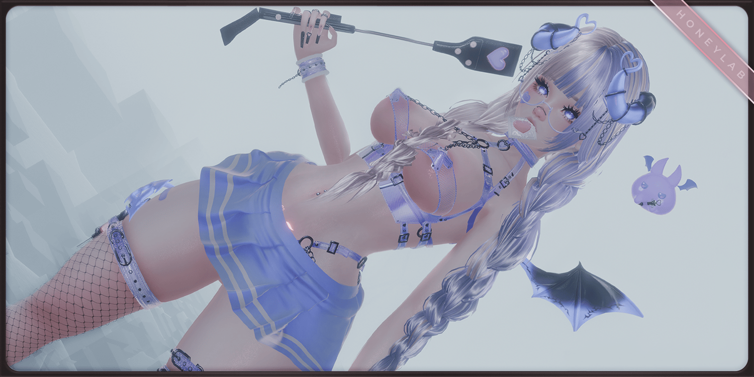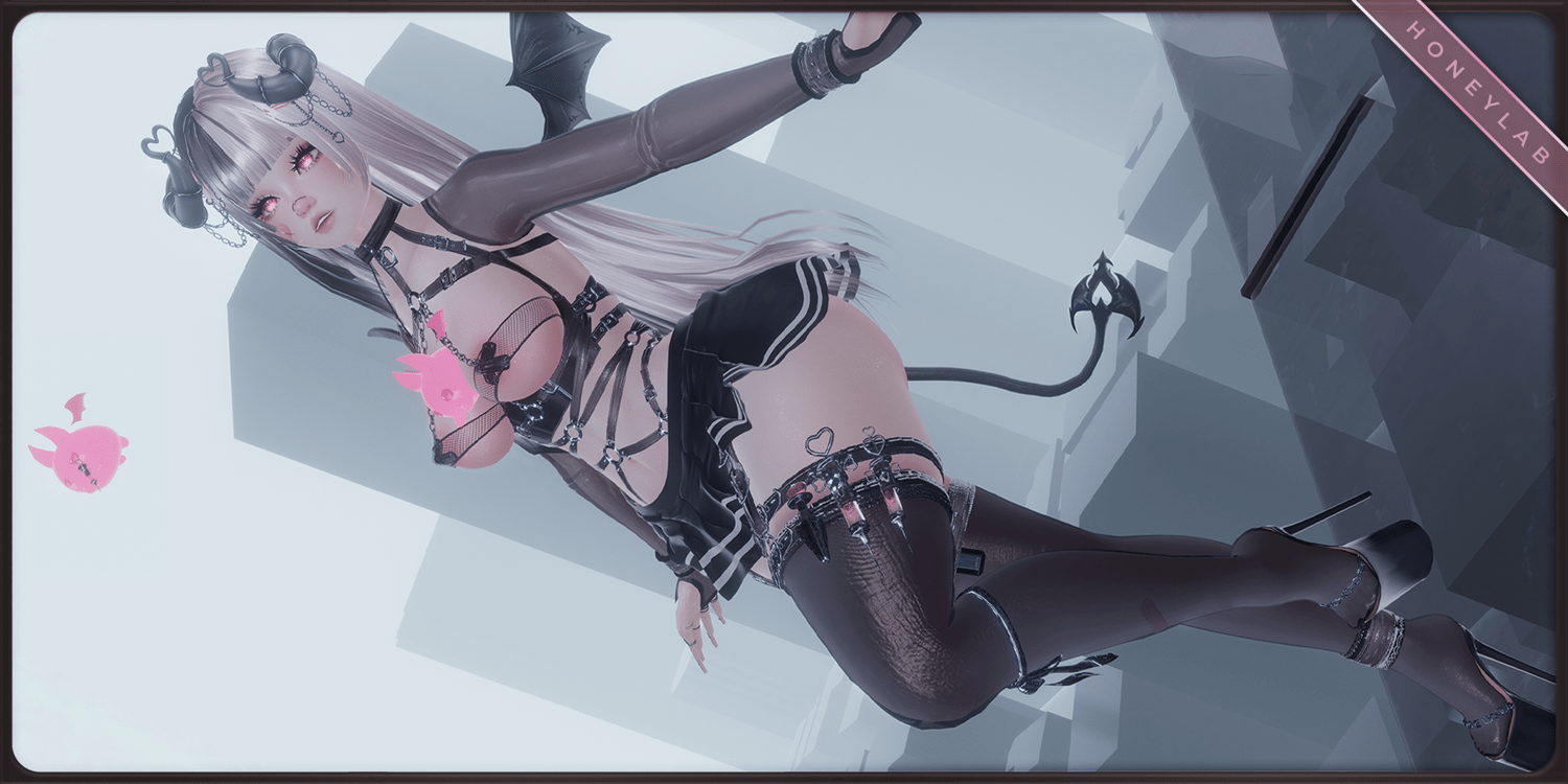 ♡ Bandaids, Blindfolds, Tail, Wings, Horns, Dress, Garters, Glasses, Gloves, Hairpins, Handcuffs, Harness, Heels, Leg cuff, NSFW Vibe, Pasties, Ribbons, Skirt, Sleeves, Sticky Notes, Stockings, Top.